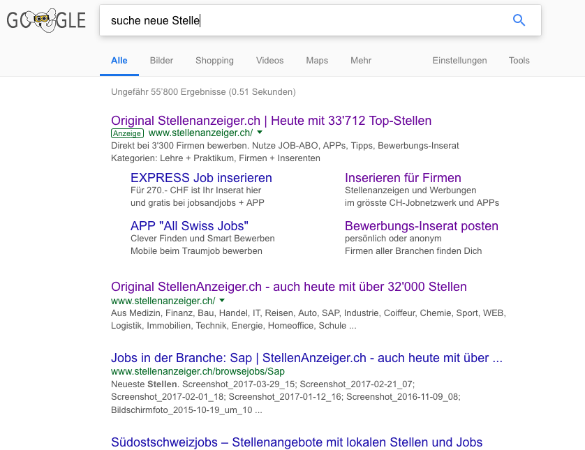 Ueber diesen Link erfahren Sie über 50 Google-Rankins von Schweizer Stellenportalen